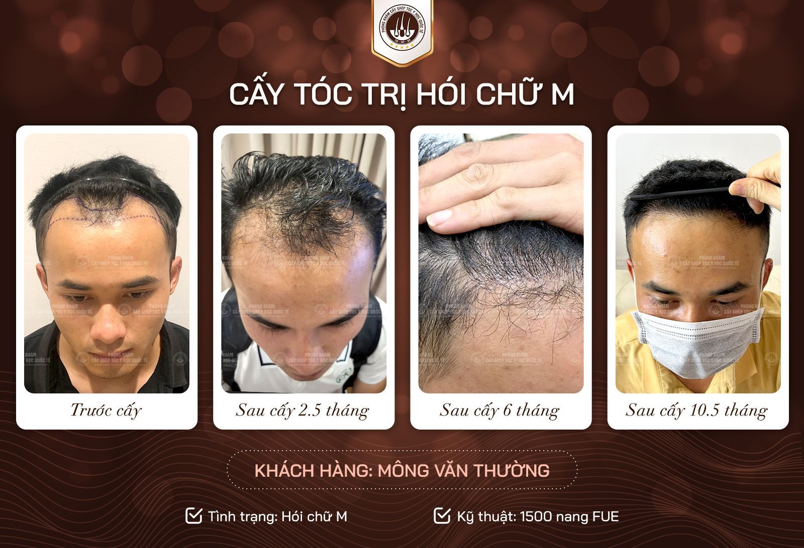 - Anh Minh (35 tuổi, Đà Nẵng): “Tôi bị hói chữ M nhiều năm, sau khi cấy tóc ở Hà Nội giờ tóc mọc đều, nhìn trẻ ra cả chục tuổi. Thật sự rất hài lòng.”
